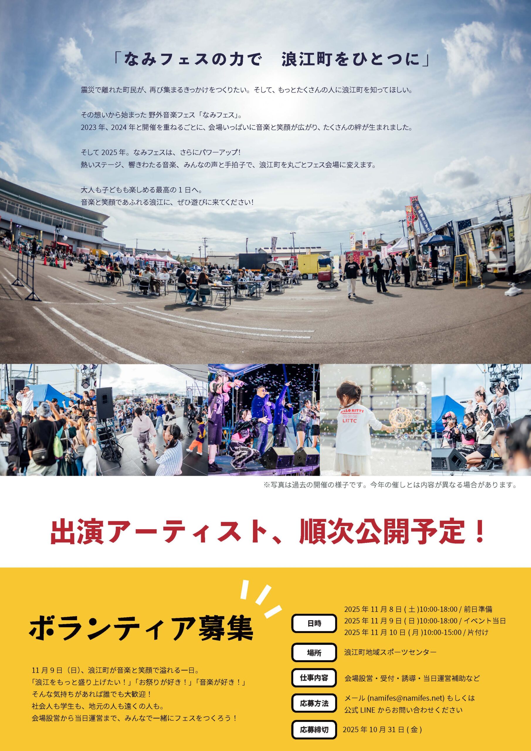 なみフェスは、そんな想いから立ち上がった野外音楽フェスイベントです。